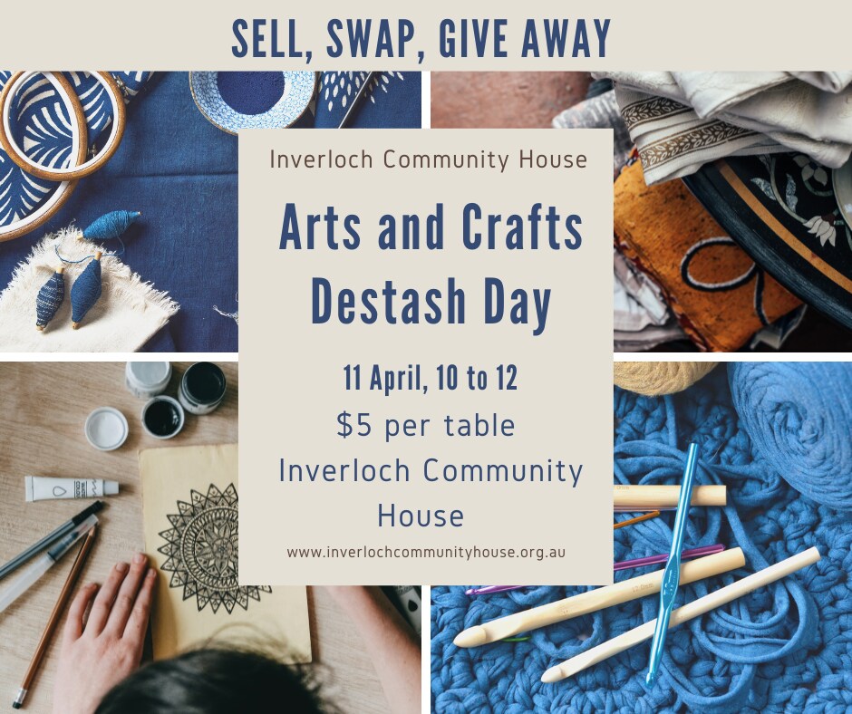 You’re welcome to book a table (provided on the day) on your own or share with a friend. It’s a great chance to clear out those unused fabrics, art materials, tools, and creative bits and pieces — and help them find a new home with someone who’ll love them.