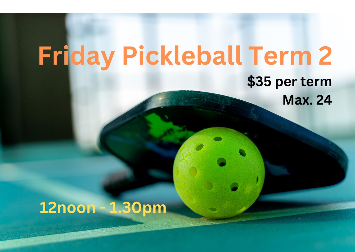 | Pickleball session time 12noon - 1.30pm A social pickleball session  General Membership Membership Required* Log in | $35.00 | Membership Required |